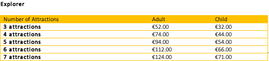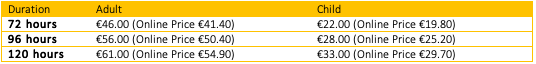 There are 3 basic cards available, all of which are valid at the same attractions and for the same discounts, valid for either 72, 96 and 120 hours (from the first time you use them).
