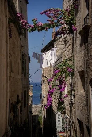 Korcula’s Old Town is nestled in a net of narrow alleyways and hidden gems. Edifices framed by flowers and colourful pot plants paint the Medieval town with a quirky character.