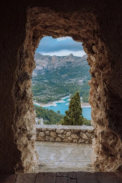 The Castell of Guadalest is perched on the peak of a profile of cliffs, overlooking the various valleys down below. The fortress’ distinctive structure provides an awe-worthy contrast to the natural surroundings.