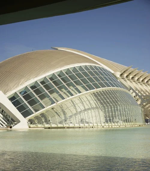 Navigate the captivating complex of white-coloured, spaceship-style complexes in Valencia’s City of Arts and Sciences.
