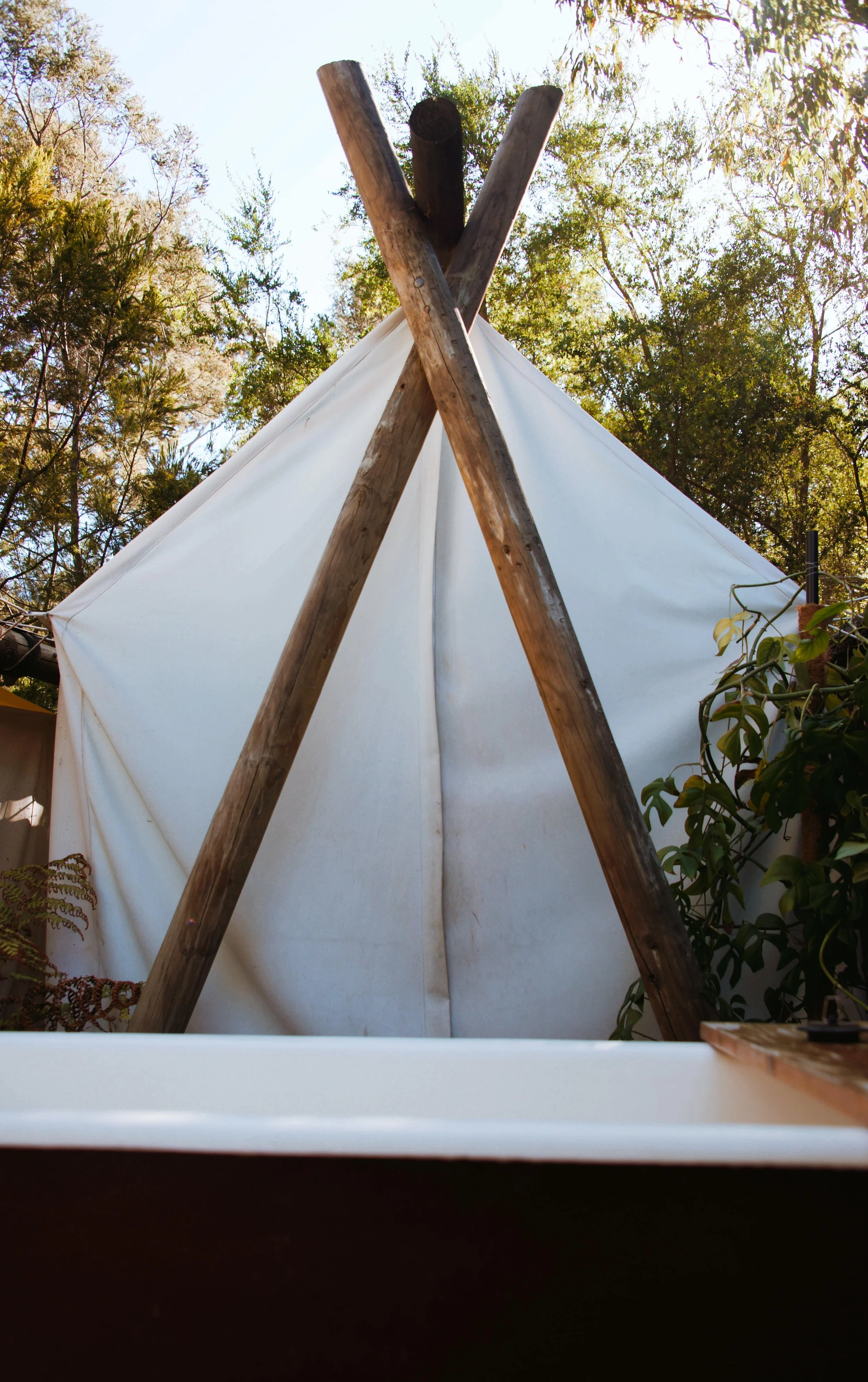 Upon arrival, I enjoyed a brief chat with Nathaniel and learnt a little bit about the area. I trailed down to the winding paths to the waterfront, where I locked eyes with the Aniham encampment. This spacious tent was surrounded by some seriously stunning scenery - the towering treetops, verdant bushes and colourful plants really stood out.
