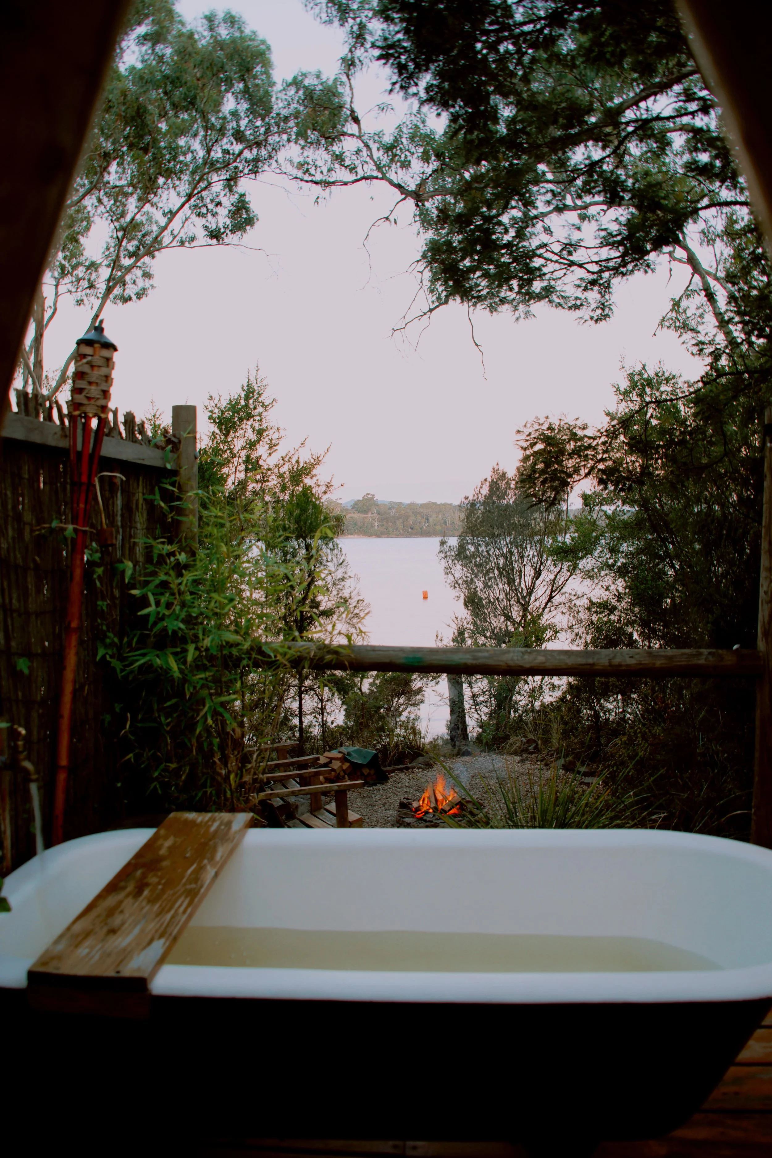 Dinner felt like it had been ripped out of a movie scene - with the local birds chirping and the campfire flickering in the background. As the sunset shone all shades of gold, orange and pink, I took a dip in the outdoor bathtub.